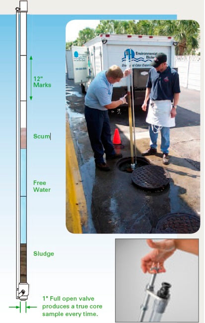 As the choice of pretreatment professionals throughout the United States, the DipStick Pro™ is used to determine accurate, repeatable and defensive core samples, that are required of the FOG levels in grease traps, interceptors, lift stations, and sludge pits.